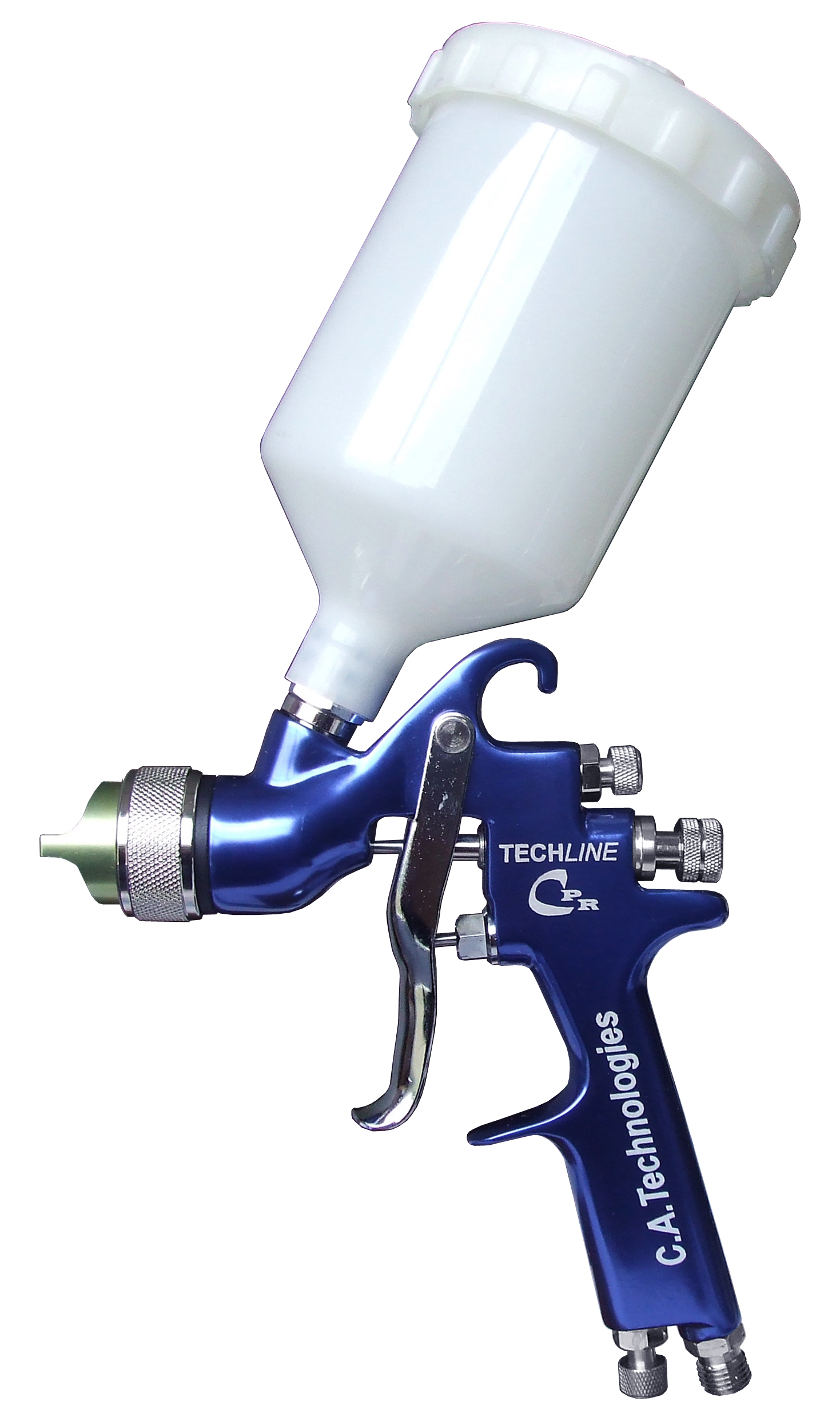 Once again CAT is proving why we are the technology leading spray gun manufacturer. The CPR spray guns from CAT combine the transfer efficiency of HVLP with the speed and finish quality of conventional air spray. The nozzle requires 11cfm at 29 PSI recommended inlet pressure. The CPR guns are available in 2 types of packs, one for the automotive industry, and one for the wood industry. These kits will also be available with your standard 1qt. aluminum gravity cup or the popular 3M PPS. Both gravity versions include the new CPR air cap and the HVLP air cap, along with 3 different needle and nozzle sizes, multi-purpose wrench, nozzle wrench, cleaning brush and mini regulator.